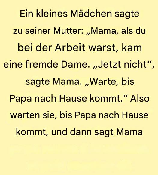 Das kleine Mädchen sitzt am Tisch und spielt unschuldig mit ihrem Löffel, während es seine Mutter ansieht. „Mama, während du bei der Arbeit warst, kam eine fremde Dame ins Haus. » Mama, die gerade damit beschäftigt ist, die Einkäufe wegzuräumen, hält abrupt inne. „Eine fremde Dame? Das werden wir sehen, wenn Papa nach Hause kommt. … Read more